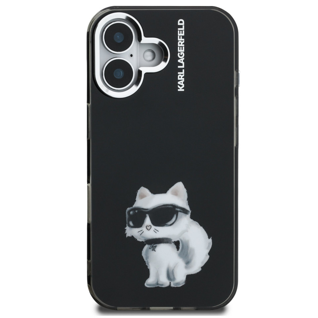 Karl Lagerfeld IML Aquarelle Choupette iPhone 16 hátlap tok, fekete