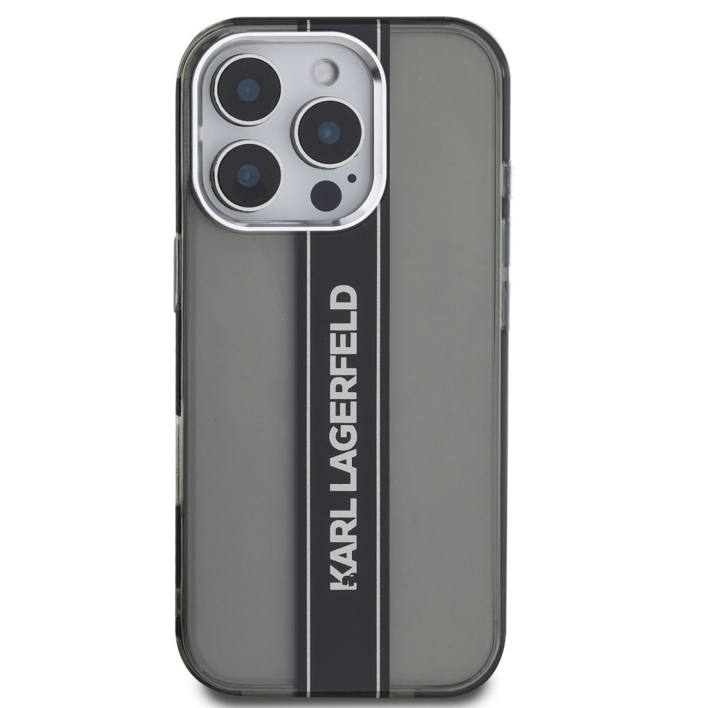 Karl Lagerfeld IML Stripe Logo iPhone 16 Pro tok kameravédő peremmel, fekete