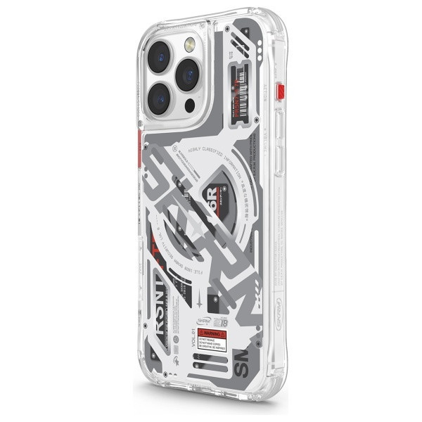 Félig átlátszó kivitelű védőtok, amely kiemeli az Ekho jellegzetes, gépszerű réteges esztétikáját. A futurisztikus kialakítás alatt egy vezeték nélküli töltésre tervezett mágneses modul található. Ezenkívül a sarkokban található cserélhető markolatoknak köszönhetően pántot is hozzáadhat, és a tokot különböző módon viselheti.