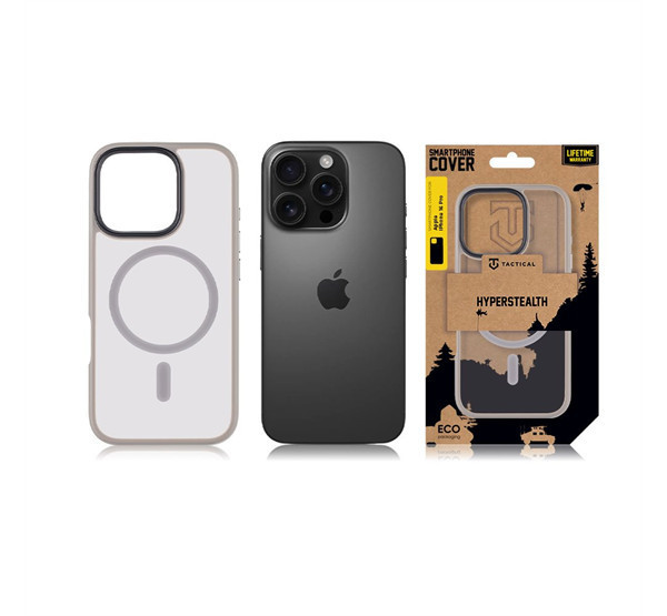 Tactical MagForce Hyperstealth Apple iPhone 16 Pro MagSafe hátlap tok, áttetsző/világosszürke