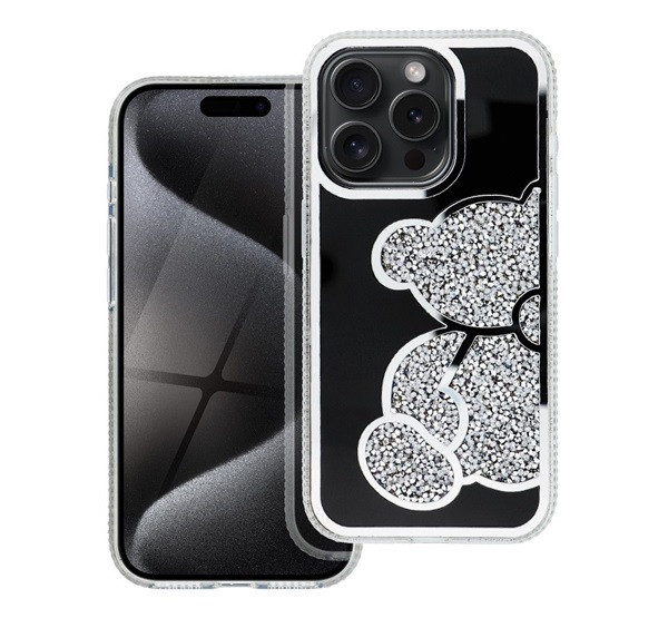 Teddy Bear iPhone 16 Pro csillogó köves tok, ezüst
