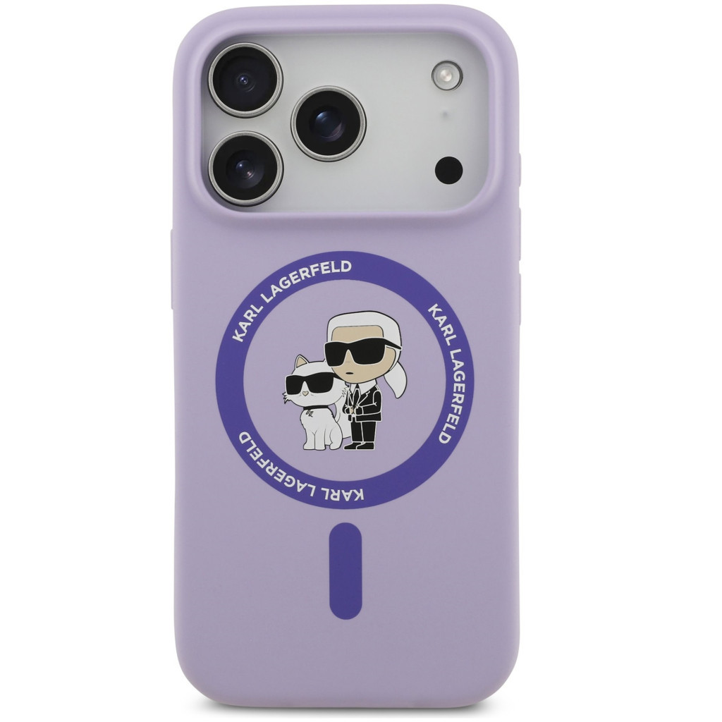 Karl Lagerfeld Liquid Silicone Karl and Choupette MagSafe iPhone 17 Pro Max hátlap tok, lila