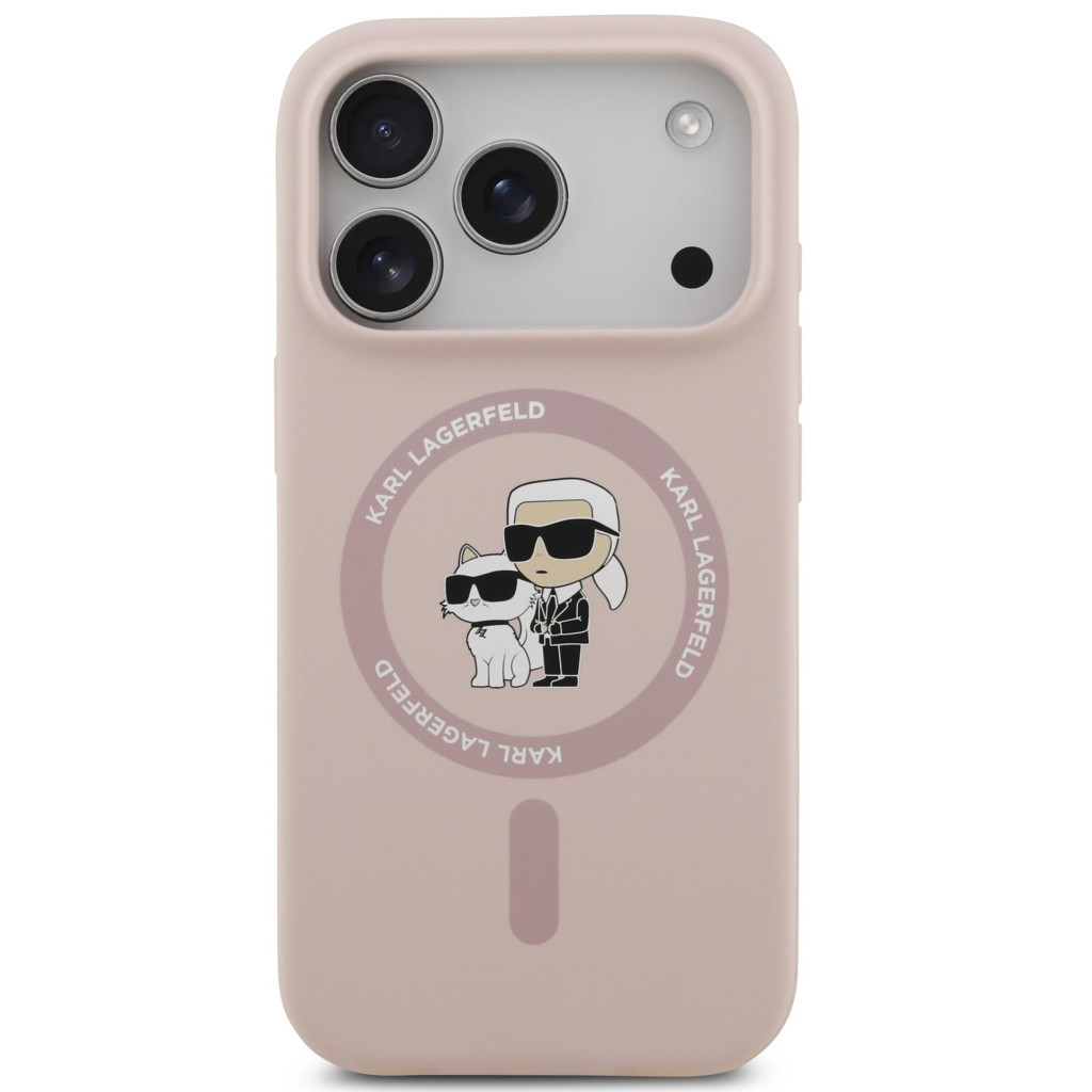 Karl Lagerfeld Liquid Silicone Karl and Choupette MagSafe iPhone 17 Pro Max hátlap tok, rózsaszín