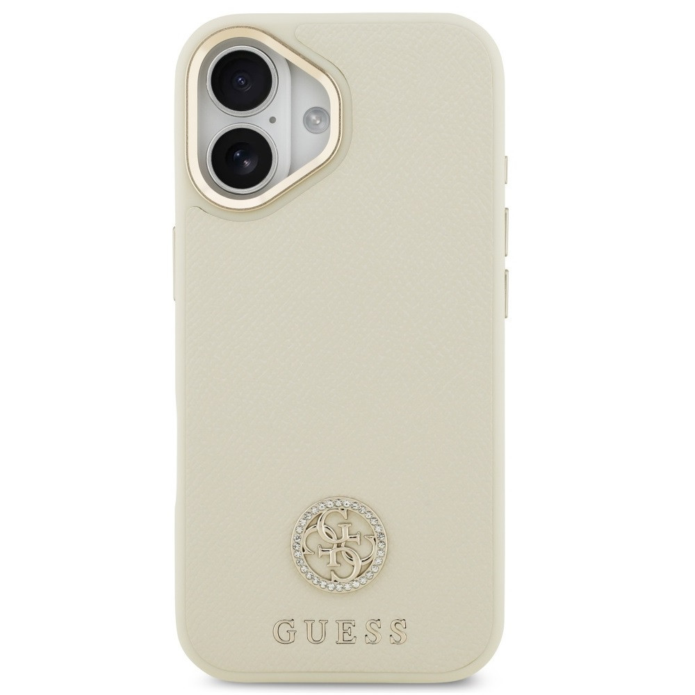 Guess 4G Grained Strass Logo Apple iPhone 17 MagSafe tok kameravédő peremmel, bézs-arany